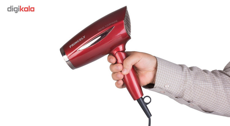 سشوار خانگی پرنسلی مدل 261، موتور DC با توان مصرفی 1800 وات، دارای قابلیت باد سرد و فناوری تولید یون، دارای حلقه آویختن، با حالت صافکننده و حجمدهنده، وزن 200 گرم، تنظیم حرارت 3 حالته و کنترل سرعت 2 حالته، به همراه 1 عدد سری متمرکزکننده پهن