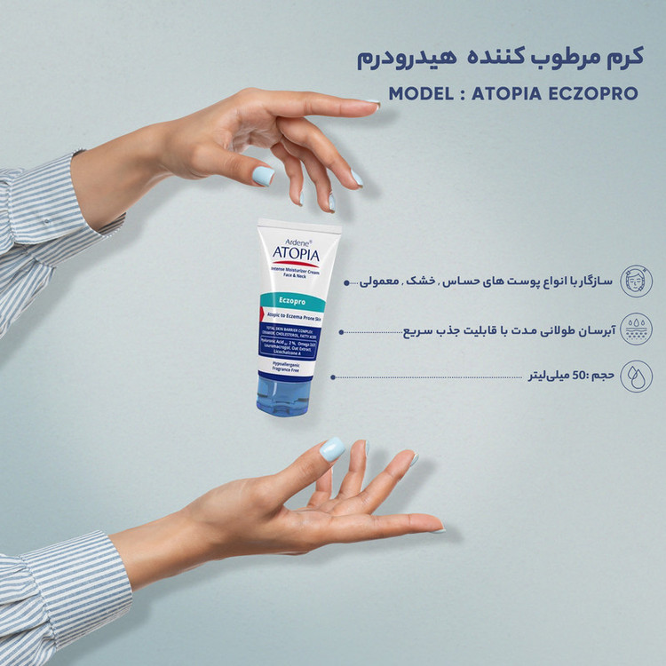 سایر توضیحات : آبرسانی طولانی مدت با قابلیت جذب سریع - مغذی و ترمیمکننده پوست - کمک به رفع و التیام خشکی، خارش و التهاب - قابل استفادهی کودکان بالای 3 ماه تا بزرگسالان - هیپوآلرژنیک - فاقد کورتون، اسانس، الکل، رنگ و پارابن