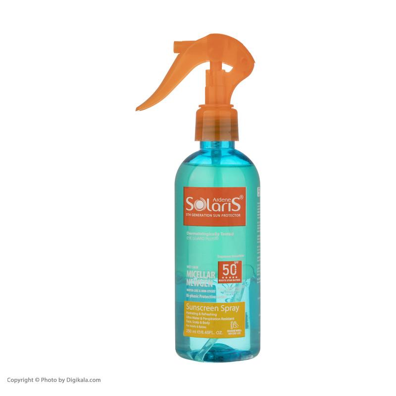 لوسیون دوفازی ضد آفتاب آردن سولاریس یکی از محصولات منحصربهفرد در دسته محصولات ضد آفتاب است که به خوبی توانسته نیازهای مختلف کاربران را برطرف سازد. از مهمترین نقاط قوت این محصول، طراحی آن به صورت اسپری است که امکان استفاده آسان و سریع را فراهم میکند. این ویژگی، همراه با حجم 250 میلیلیتری آن، محصولی کارآمد و اقتصادی را برای مصرفکنندگان به ارمغان میآورد. یکی از نکات برجسته این لوسیون، فرمولاسیون دوفازی آن است. این نوع فرمولاسیون به معنی این است که محصول حاوی دو فاز مختلف بوده که با تکان دادن بطری قبل از استفاده، به خوبی با هم ترکیب شده و اثربخشی بهتری روی پوست ایجاد میکند. این نوع طراحی باعث میشود تا ترکیبات فعال محصول به طور یکنواخت بر روی پوست پخش شوند و محافظت بهینهای فراهم آورند. لوسیون آردن سولاریس با SPF 50 به طور مؤثری از پوست در برابر اشعههای مضر UVA و UVB محافظت میکند. این ویژگی بسیار مهم است، زیرا اشعه UVA میتواند به عمق پوست نفوذ کند و باعث پیری زودرس شود، در حالی که UVB بیشتر با آفتابسوختگی مرتبط است. ترکیب این محافظت دوگانه با خاصیت ضد آبی محصول، انتخابی مطمئن برای روزهای گرم و آفتابی خواهد بود. این ویژگیها، همراه با خاصیت ضد حساسیت محصول، آن را به یکی از بهترین گزینهها برای خانوادهها و افرادی که به دنبال یک محصول ضد آفتاب مطمئن هستند، تبدیل کرده است.