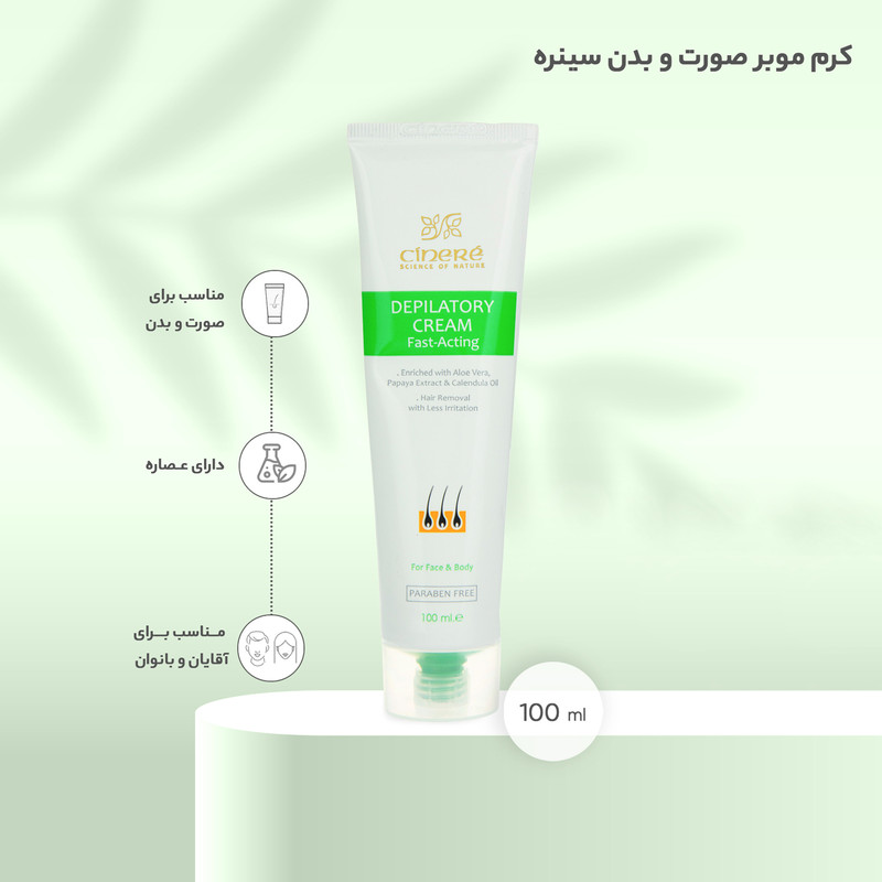 موزدایی کامل در 5 دقیقه حاوی عصاره پاپایا جهت تضعیف موهای زاید - دارای روغن گل همیشه بهار و آلوئه ورا جهت پیشگیری از التهاب ایجاد نرمی و لطافت در پوست پس از موزدایی - استفاده آسان